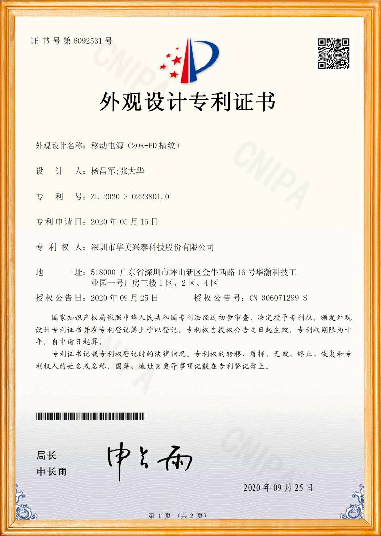 移动电源产品品质证书1